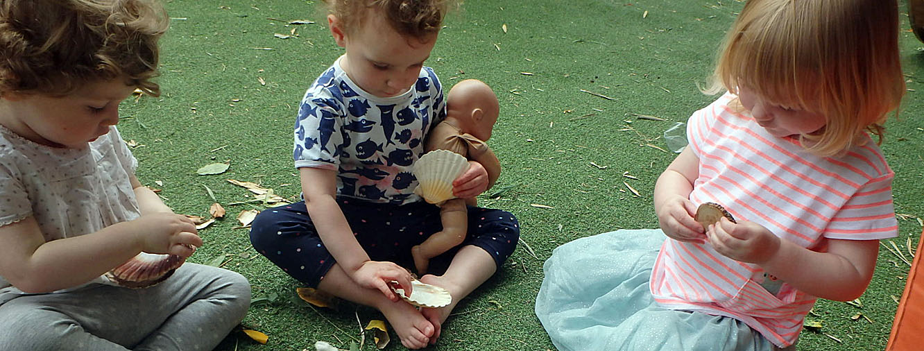There is time outside every day in our garden. Toddlers engage in ball games, small circle games, chasing and catching, as well as the opportunities for exploration and discovery. We draw attention to the features of the natural world, grow plants together and investigate the mini-beasts and animals that we come across. We provide, sand, water, mud play and other types of sensory play. There are large blocks to build with, bikes and scooters and platforms to climb on and develop gross motor skills.